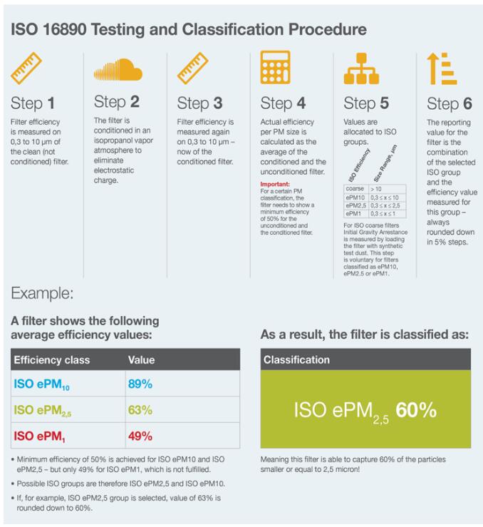 ISO 16890, 产品过滤效率介于中等到高等之间的,